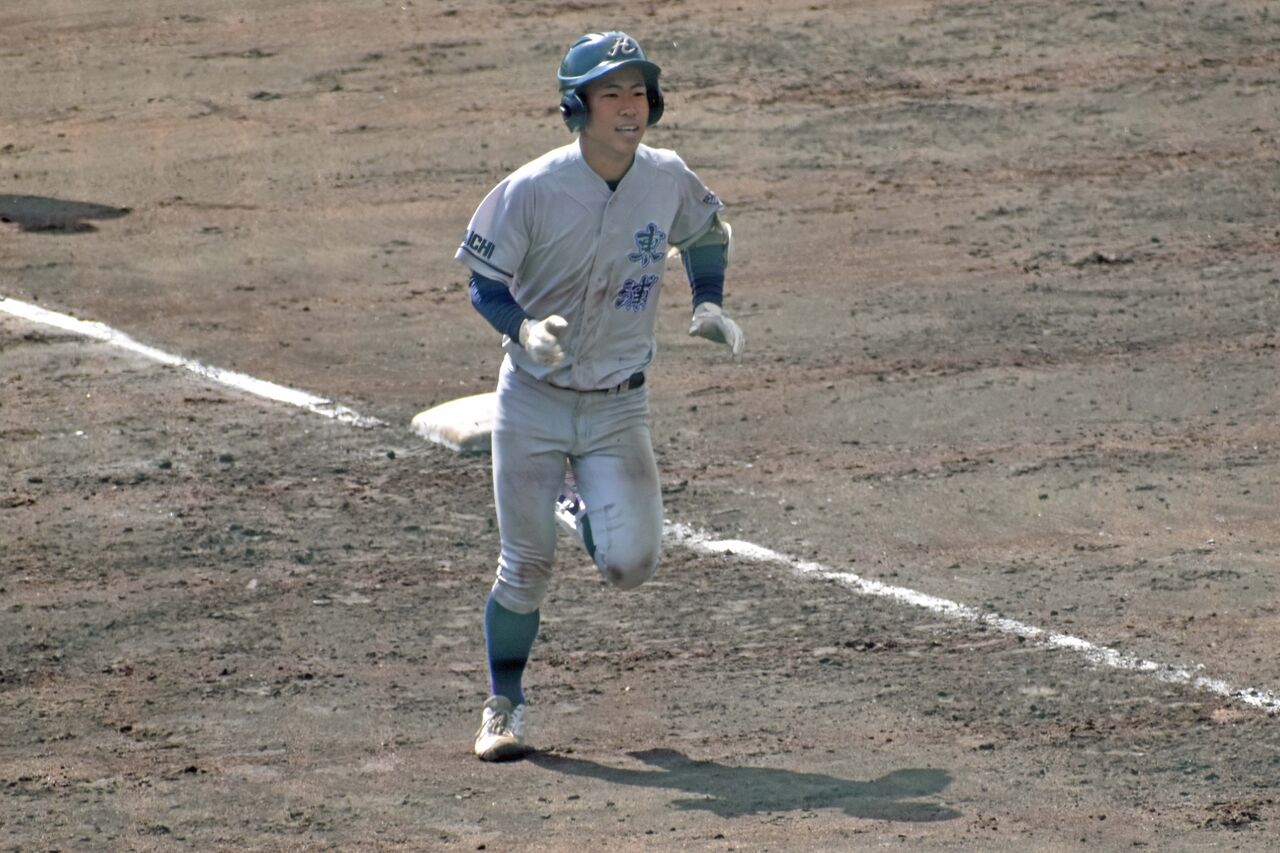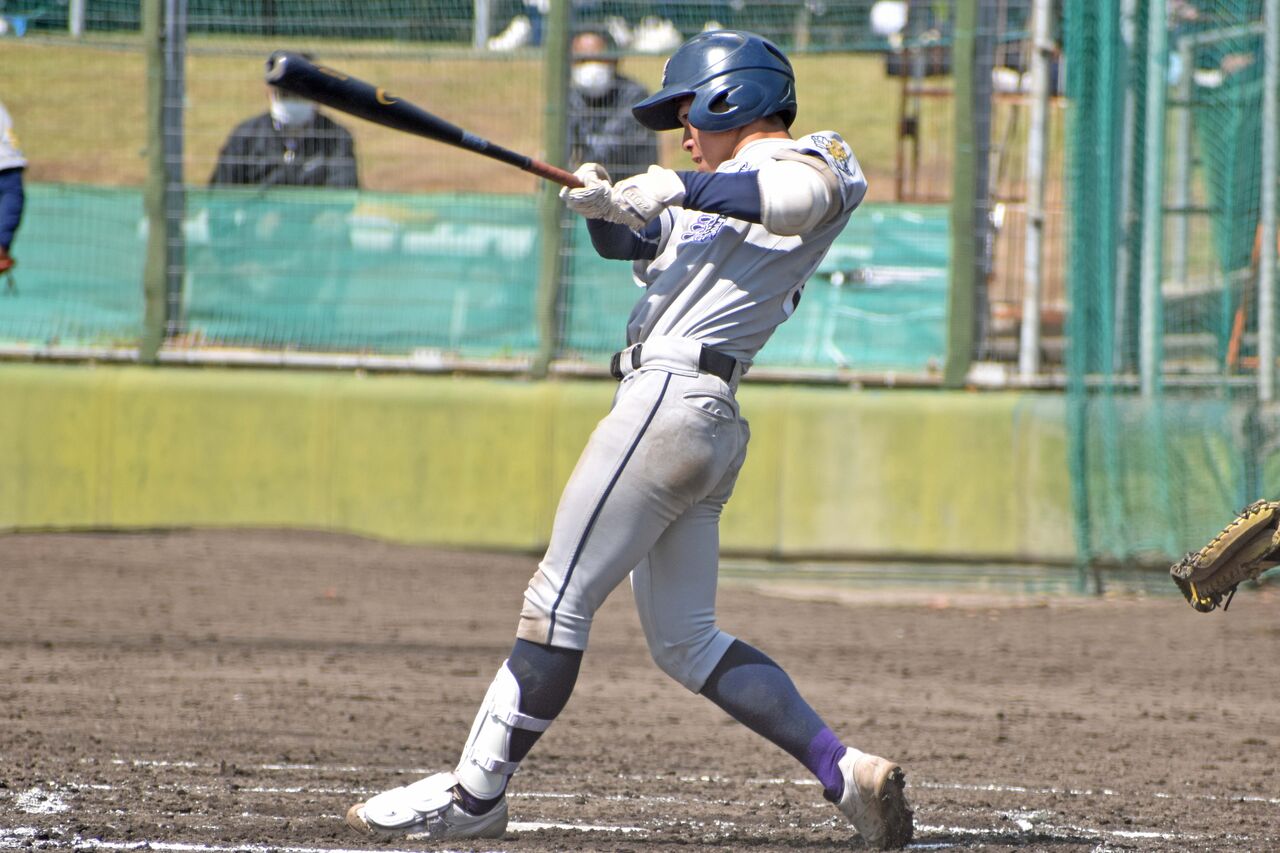 半田東戦では1番サードで出場。3回にはホームランをレフトへ叩きこみました。3安打、2四死球と出塁して貢献。