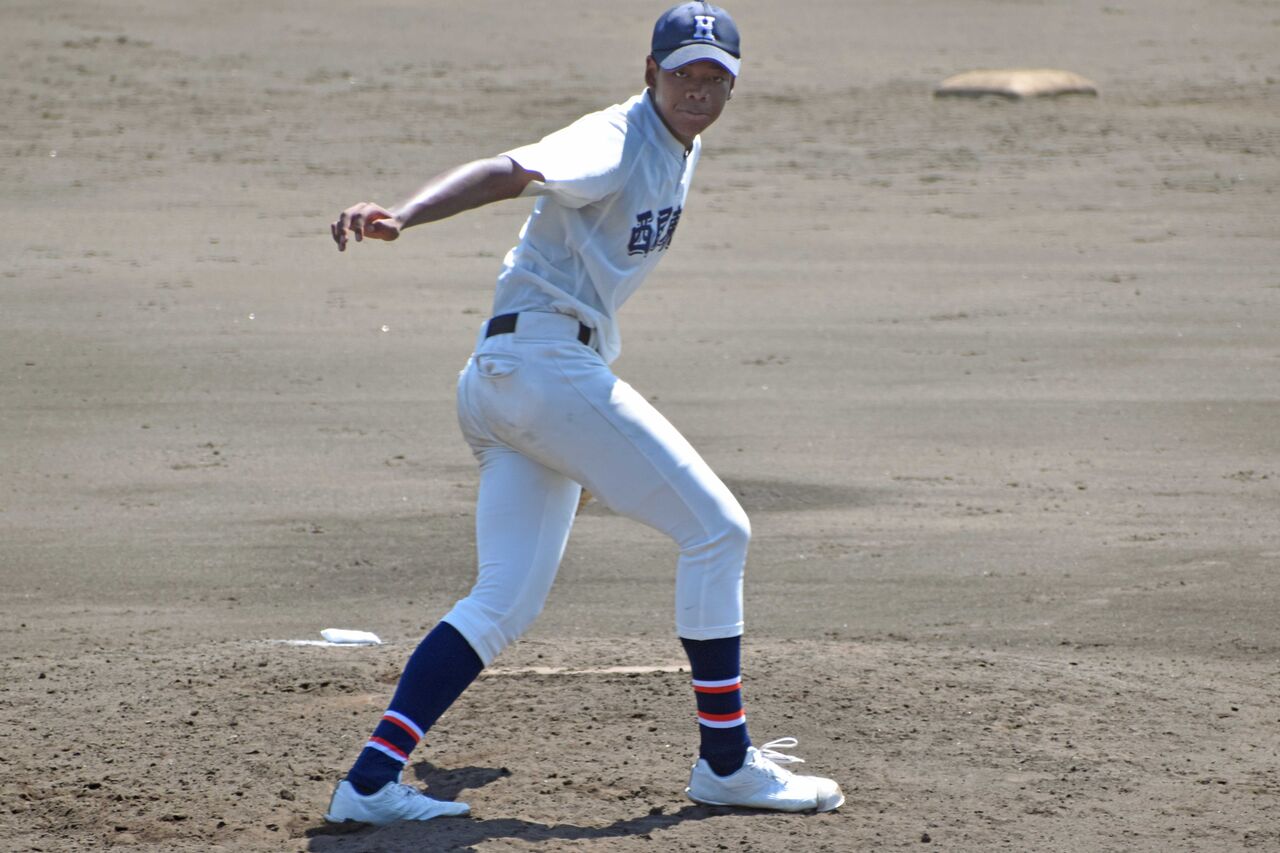 登板時にMAX136kmをマーク。まだ細身でコントロールにばらつきはあるものの、ボールに切れがあり、伸びしろを感じる投手。