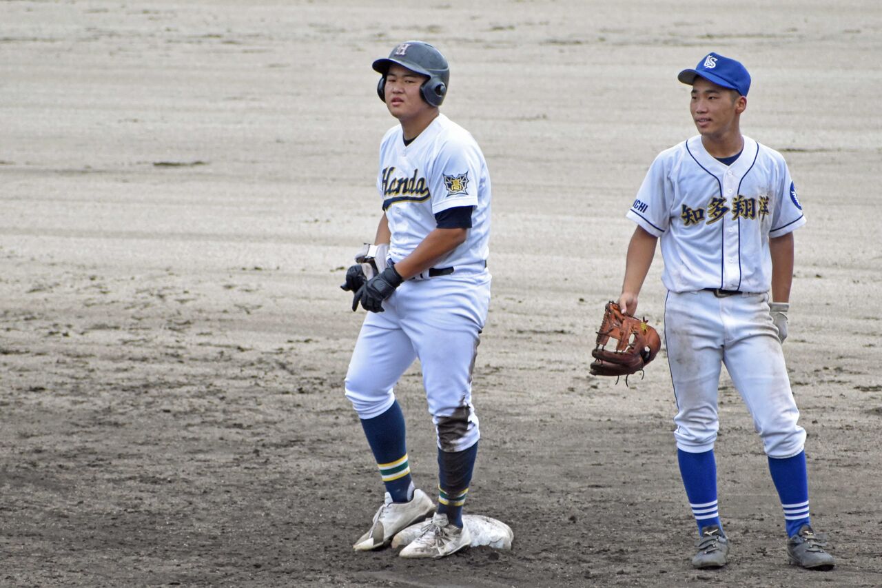 知多翔洋戦では3番ライトで出場。夏大も3番ライトでした。パンチ力があり、3回にはライトフェンス直撃のタイムリー2ベースを放つ等2安打と活躍しました。ずんぐりした体型ですがスピードもあり、能力の高さを感じます。