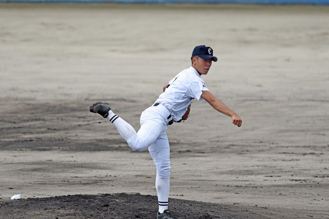 7回からマウンドに上がり、3イニングを四死球2、ノーヒットピッチングでした。MAXは135km。フォームや体格のバランスが良く、まだまだ伸びそうな投手です。