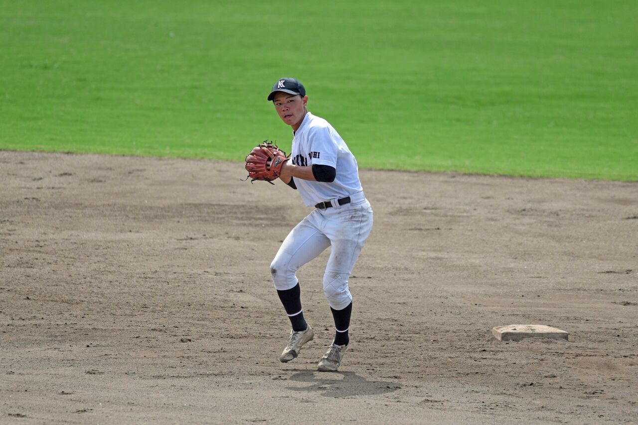 3番ショートで出場。とにかく守備の動きが素晴らしく、センスを感じる選手。動きが良すぎて、アウトに出来ない打球に追いついてエラーにされる場面も。送球が安定したらすごい選手になりそう。1塁へも4.1秒くらいで到達。試合中は2年生と思い込んでいて、1年生だったことにまたびっくり。成長が楽しみな選手です。