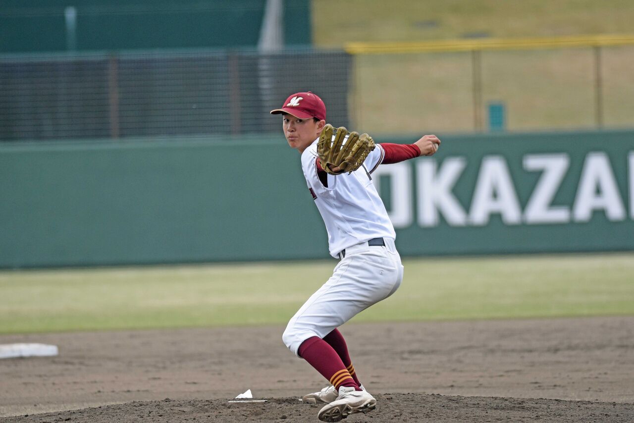 7回からマウンドに上がり、3回をパーフェクト。MAX151㎞を何度もマーク。愛院大を寄せ付けない投球でした。今季は苦しい投球が多かったようですが、最後にいい内容を見せられて良かったですよね。来年に向けてしっかりと準備をしてほしいです。