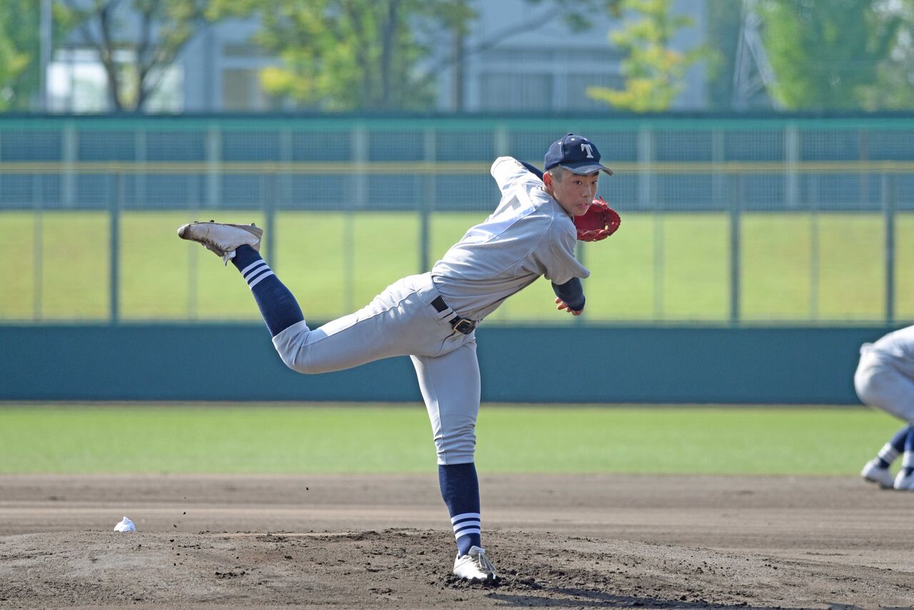 先発してMAX133km/hをマーク。力投型で力強い球を投げ込みます。少しインステップで角度のある球を投げるのが特徴。