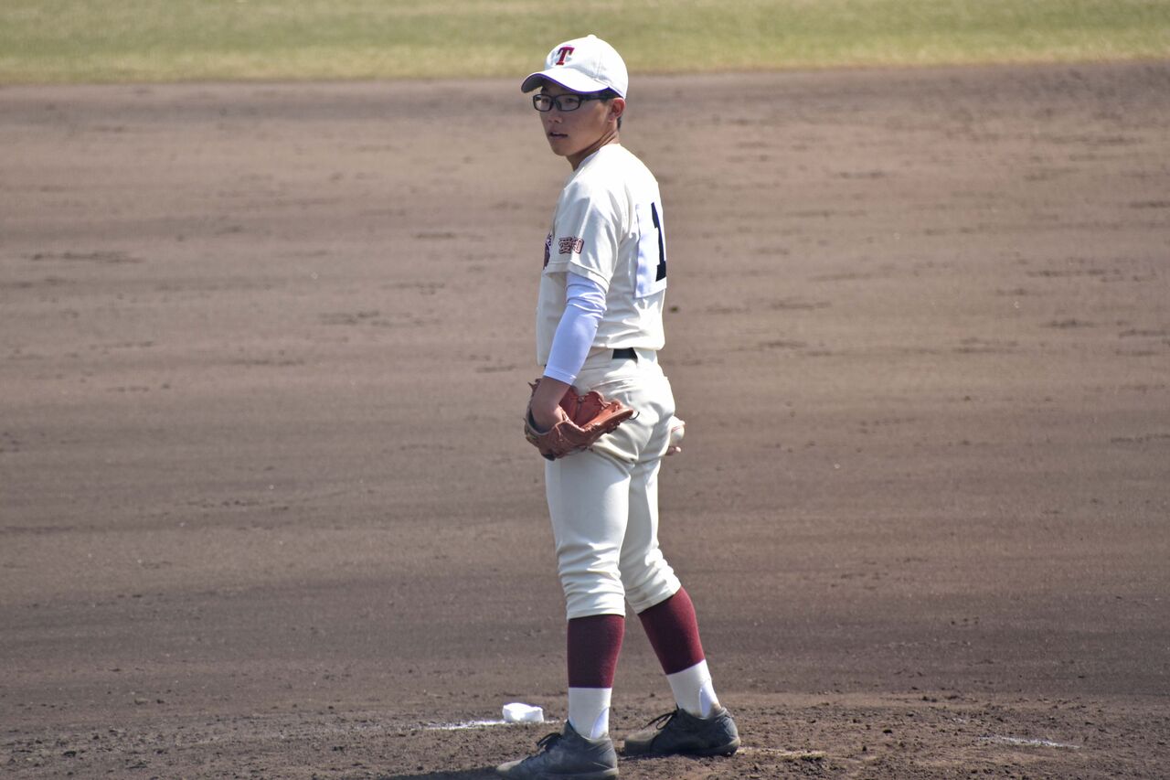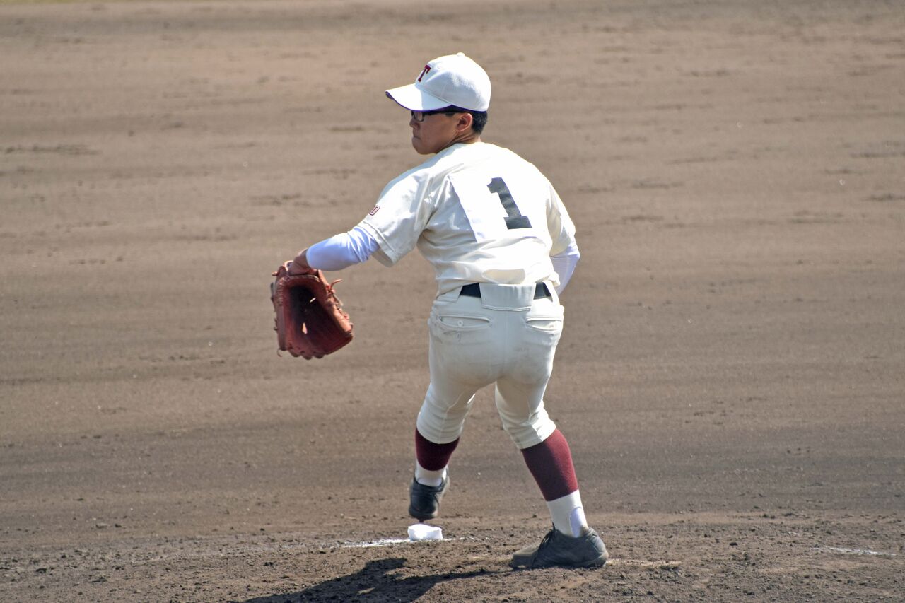 前日に粘り強いピッチングで完投。そのためかリリーフでの登板でしたが、ランナーを許しながらも失点は防ぎ、県大会に進んだ力を見せてくれました。小柄ですが、まずまず力のある球を投げていました。