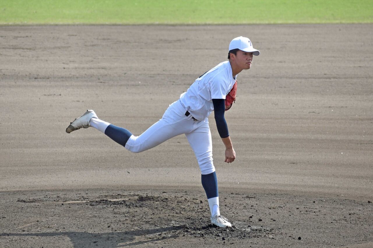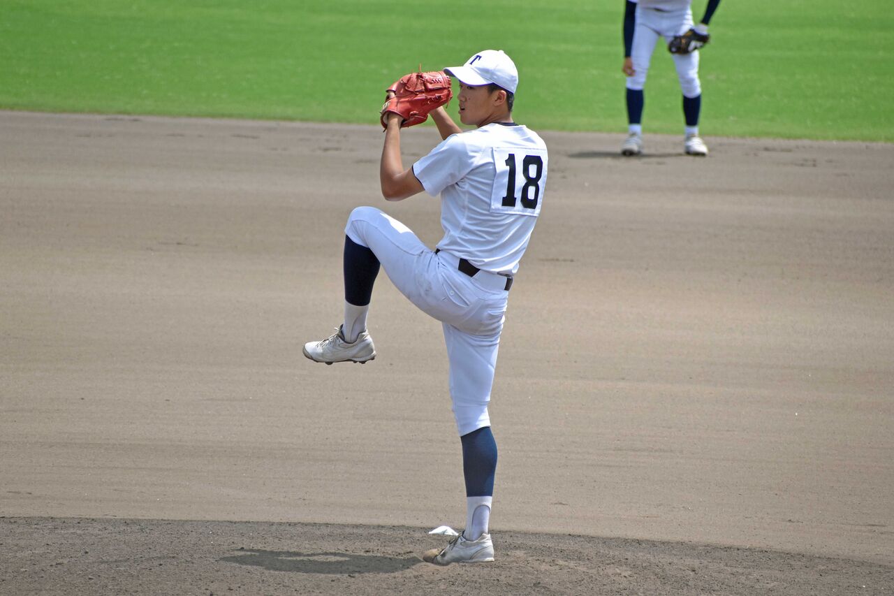 先発して8回を1失点。テンポが速く、MAXは141kmをマーク。リリースで力を入れて投げるフォーム。3回まではいい当たりもされましたが、4回以降は落ち着いて打たせて取る投球が出来ていました。