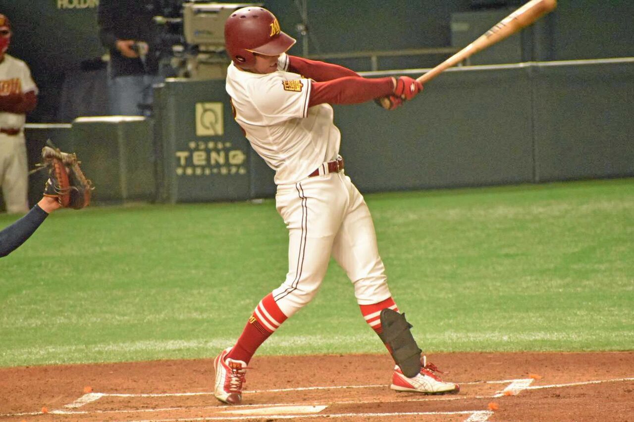 春のリーグ戦で首位打者を獲得。この日は3番に入り同点タイムリーを放ちました。右のヒットメーカーというのはすごいですよね。
