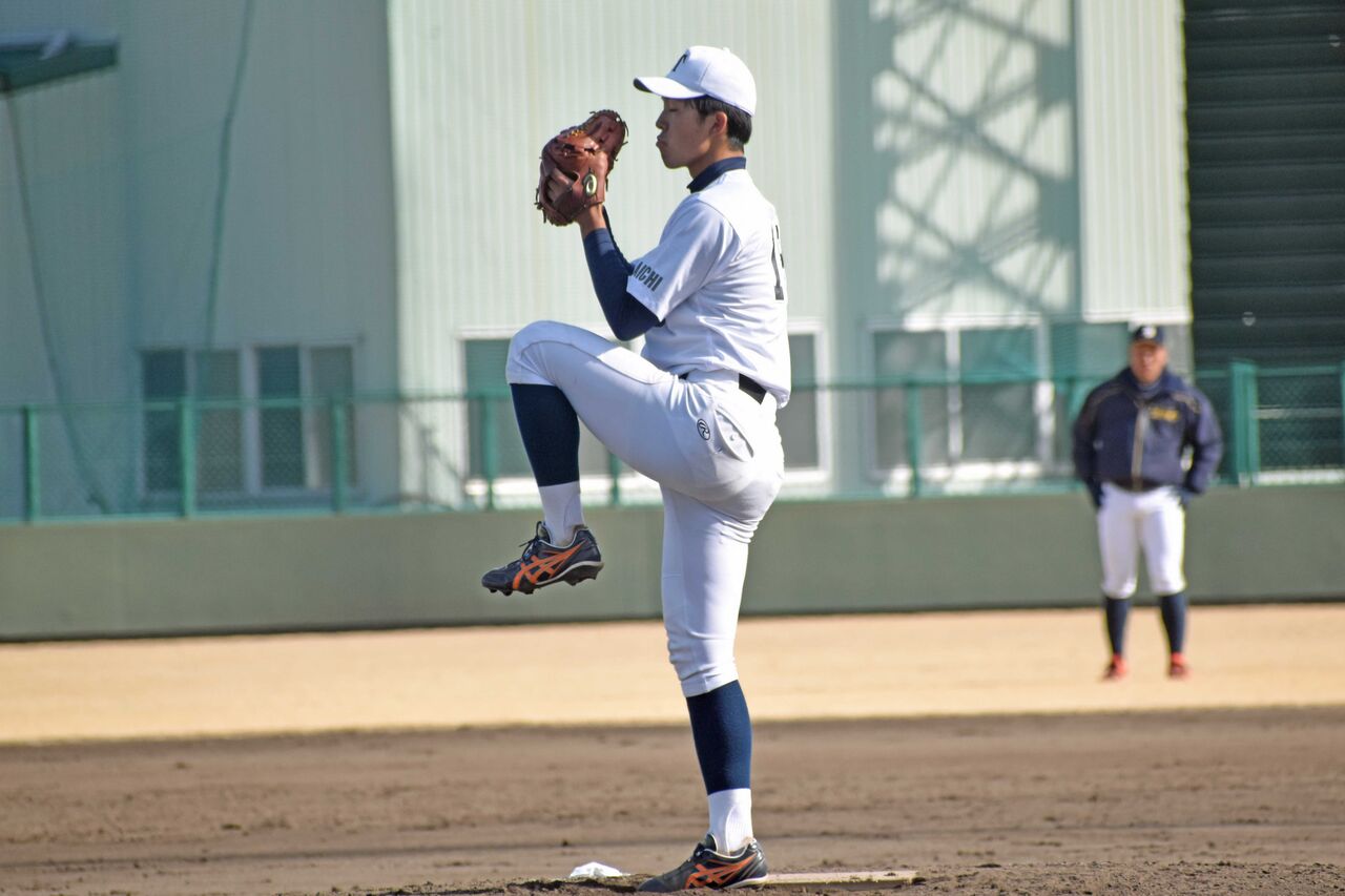 先発し5回を6安打無失点。MAXは141㎞。立ち上がりに四球を出して以降はコントロールも安定して、中部大打線を無失点に抑えたのは自信になりそう。