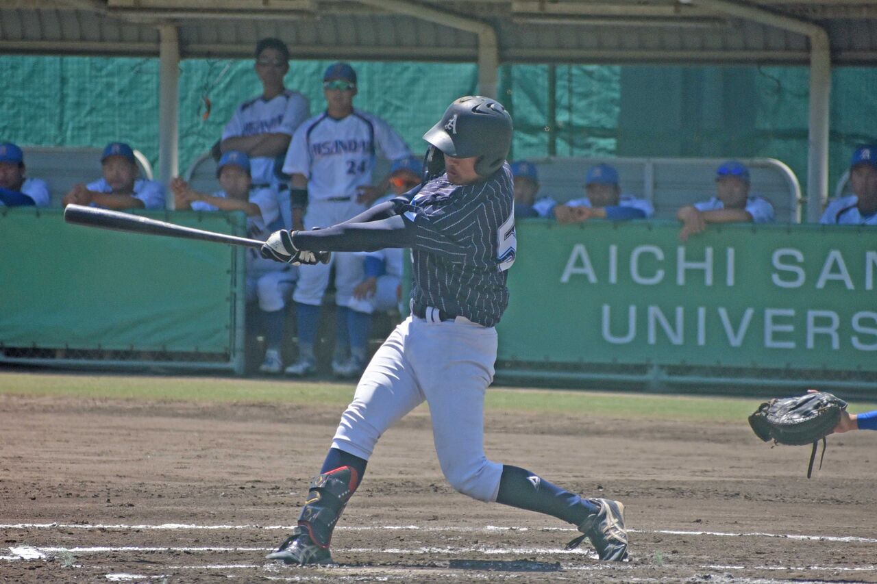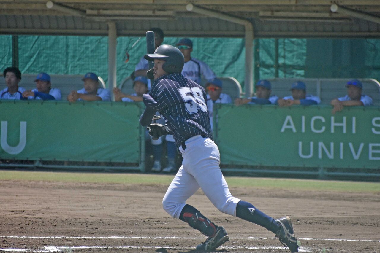 5番センターで出場。3塁打2本を含む3安打の猛打賞で、愛大の中では別格の雰囲気を出していました。3盗を決める場面もありましたし、センスが光ります。