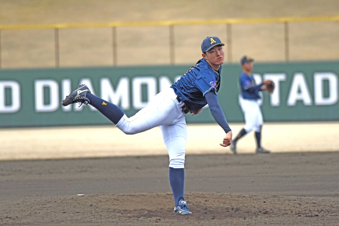 7回からマウンドへ上がり、死球を1つ出したもののトヨタ打線をノーヒット、3奪三振と見事な投球で抑え込みました。MAXも145km/hをマーク。まっすぐで押せるタイプで球質がよさそう。今年は中心で期待したい投手ですね。