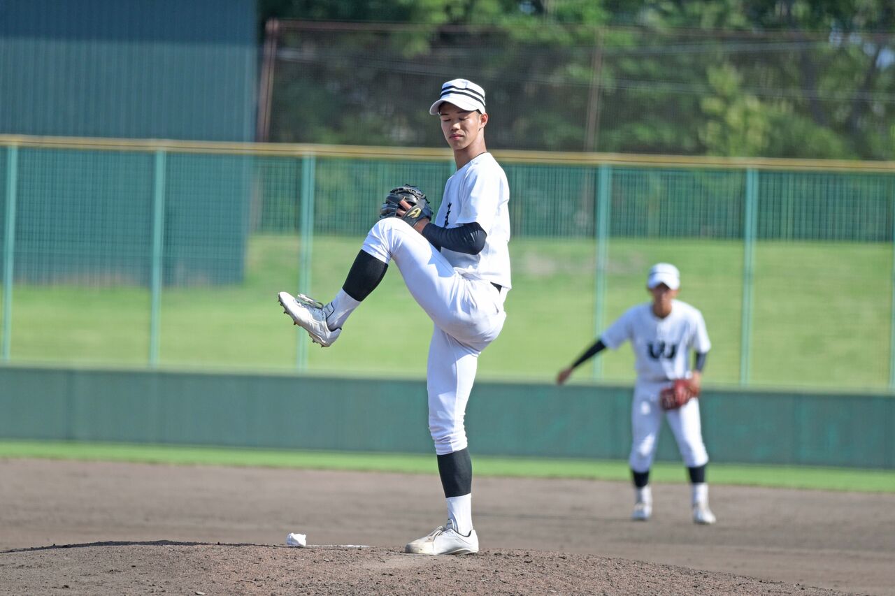 中盤からマウンドへ上がり粘りのピッチングを見せました。130km/hをマーク。180㎝と上背もあり、まだまだ伸びしろを感じる投手です。