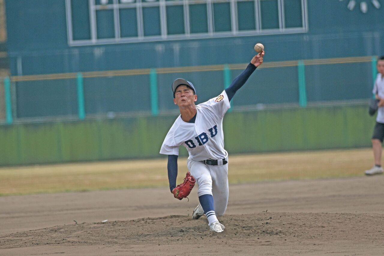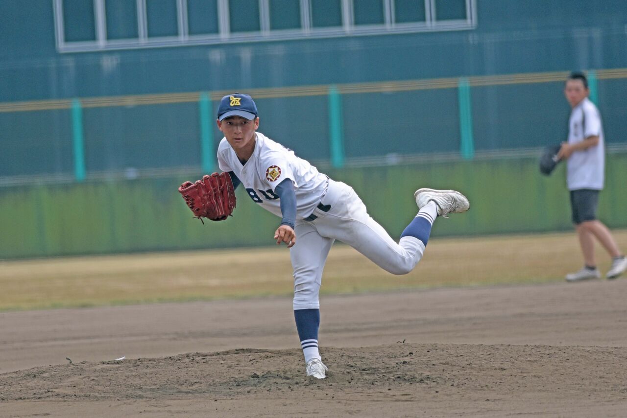 6回途中からマウンドへ上がり、三振を奪うと、次のイニングも0点で抑える。まっすぐは120km/h後半で力があり、球威で押せる投手でした。