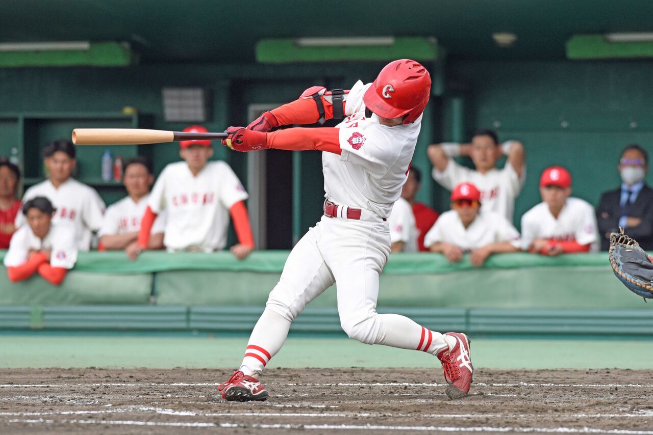 9番センターで出場。2安打のマルチで足の速さが目立つ選手。2ゴロでの駆け抜けタイムが3.88秒とかなりの速さ。来年の俊足選手の候補の1人ですね。