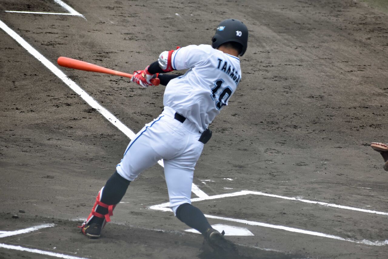 この試合では4番に入り、結果2安打。新人とは思えないシュアのバッティングが光ります。