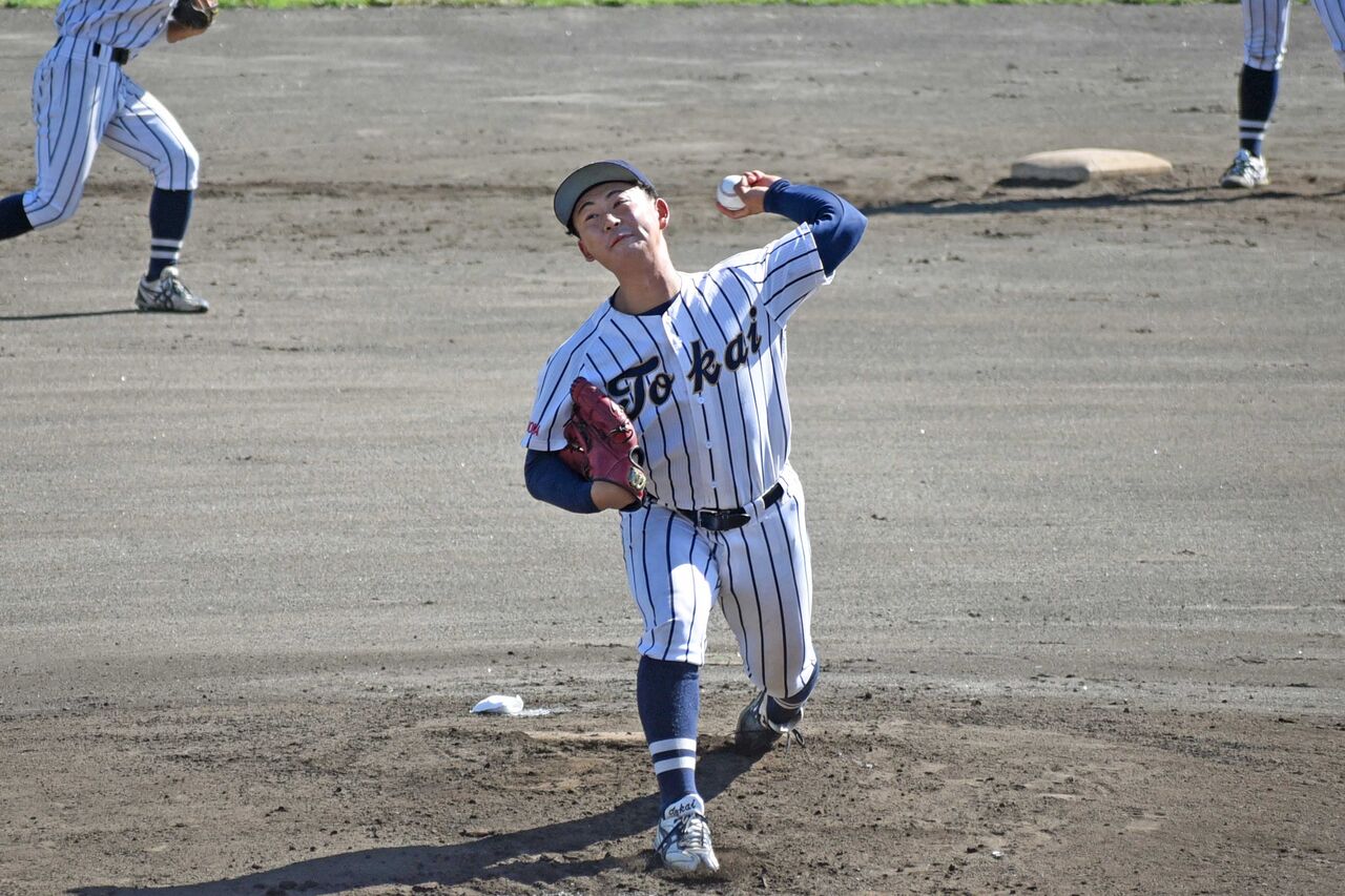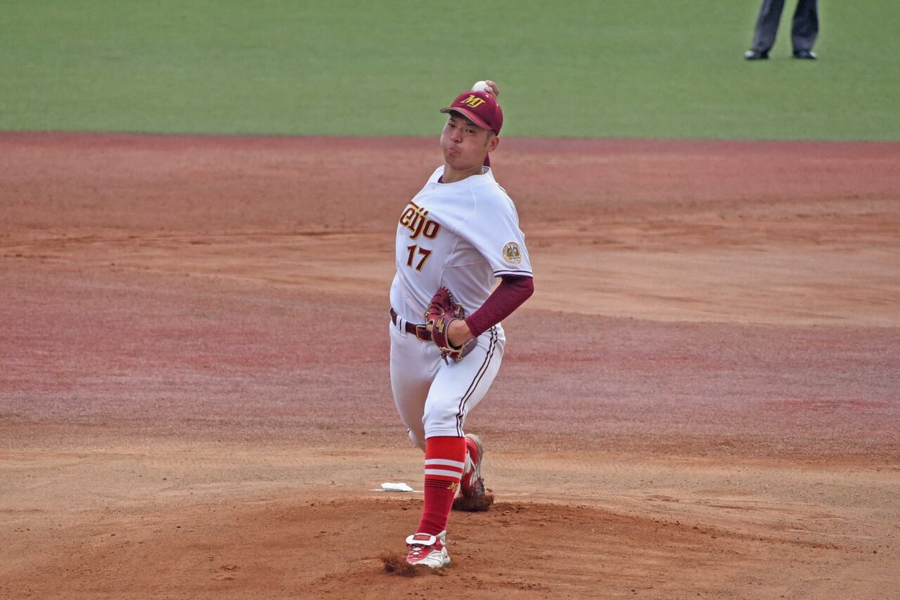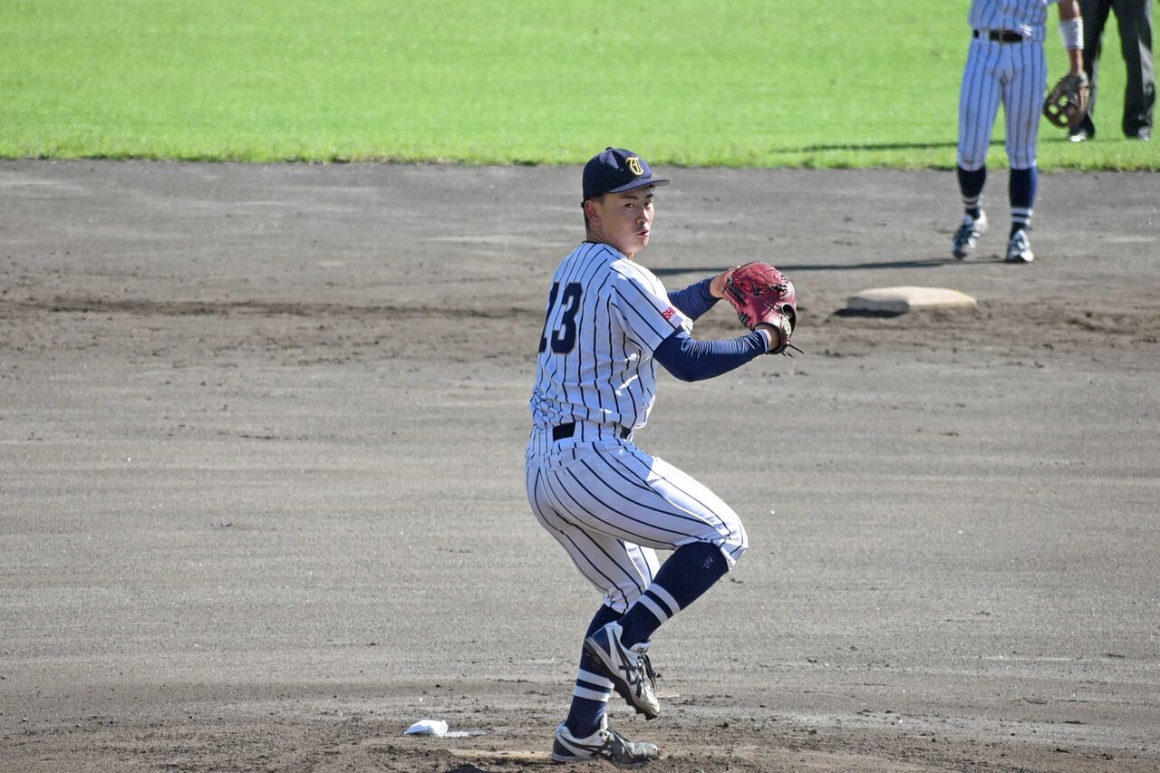 7回からマウンドに上がり、3回をパーフェクト。MAX151㎞を何度もマーク。愛院大を寄せ付けない投球でした。今季は苦しい投球が多かったようですが、最後にいい内容を見せられて良かったですよね。来年に向けてしっかりと準備をしてほしいです。