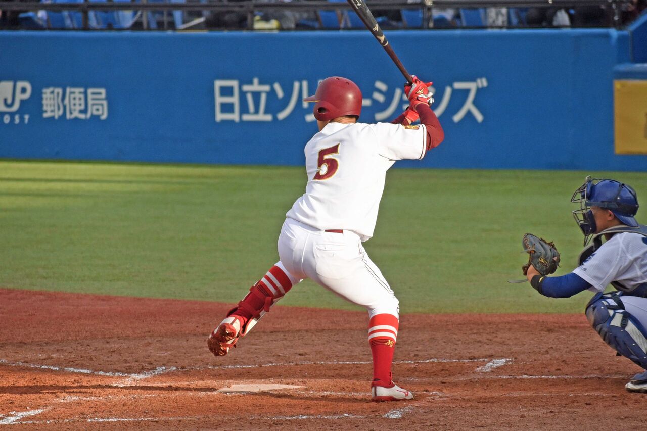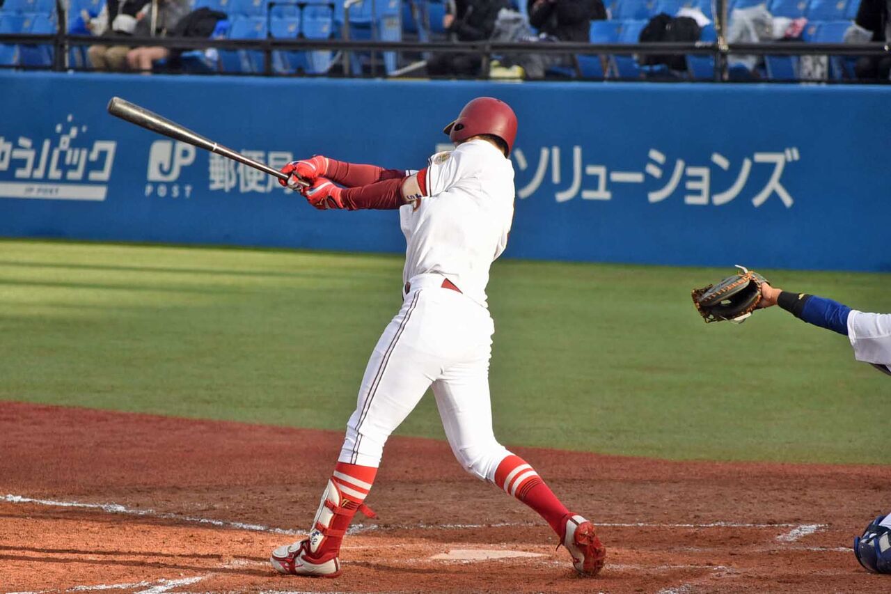 4番捕手で出場。2安打1犠飛で3打点の活躍。7回のセンターオーバーはグンと伸びてセンターが追いつけず、という打球でした。センター方向に伸びる打球が目立ちますね。