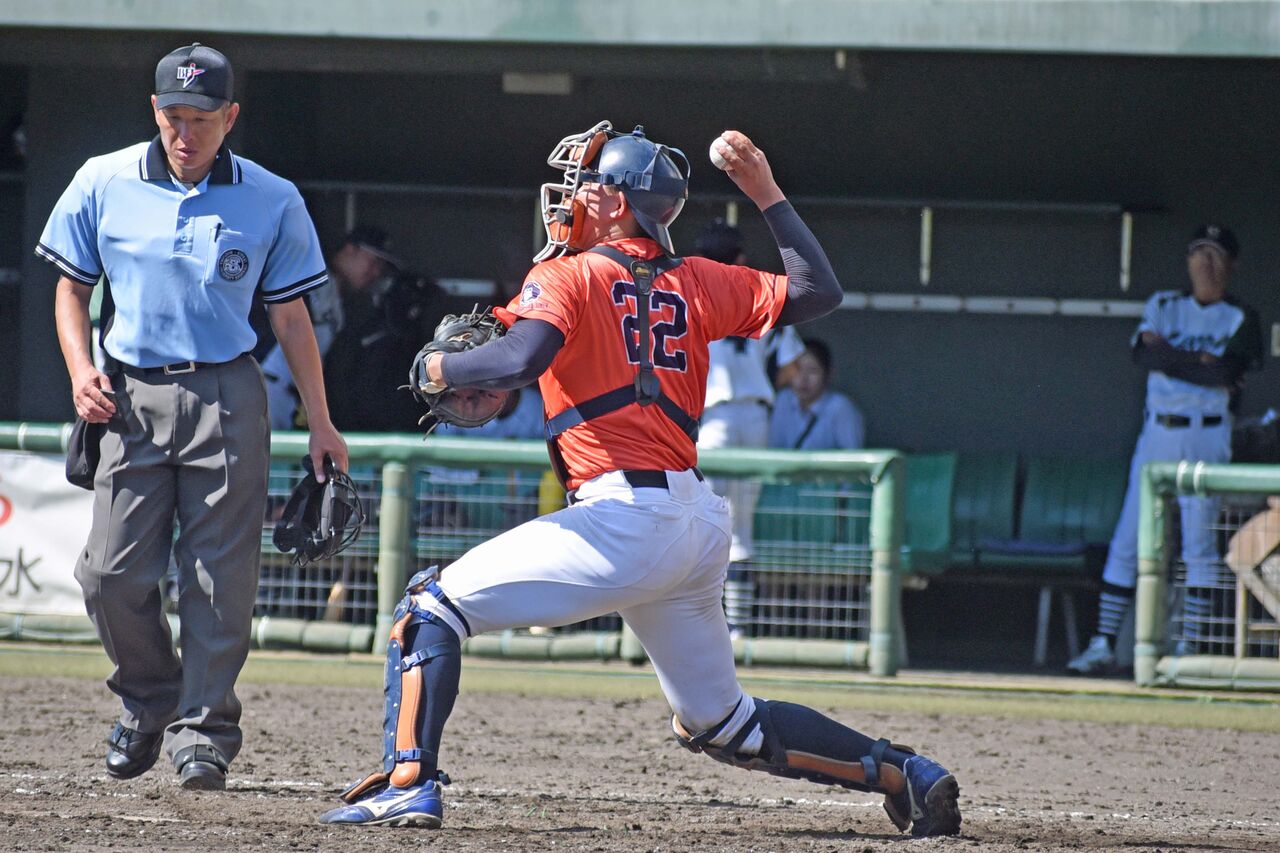 6番捕手で出場。肩も2秒を切る強肩で、名城大の小林選手の盗塁を阻止する場面も。打つ方でもホームランを放ち、それも含む3安打の猛打賞。今後注目になりそうな選手です。